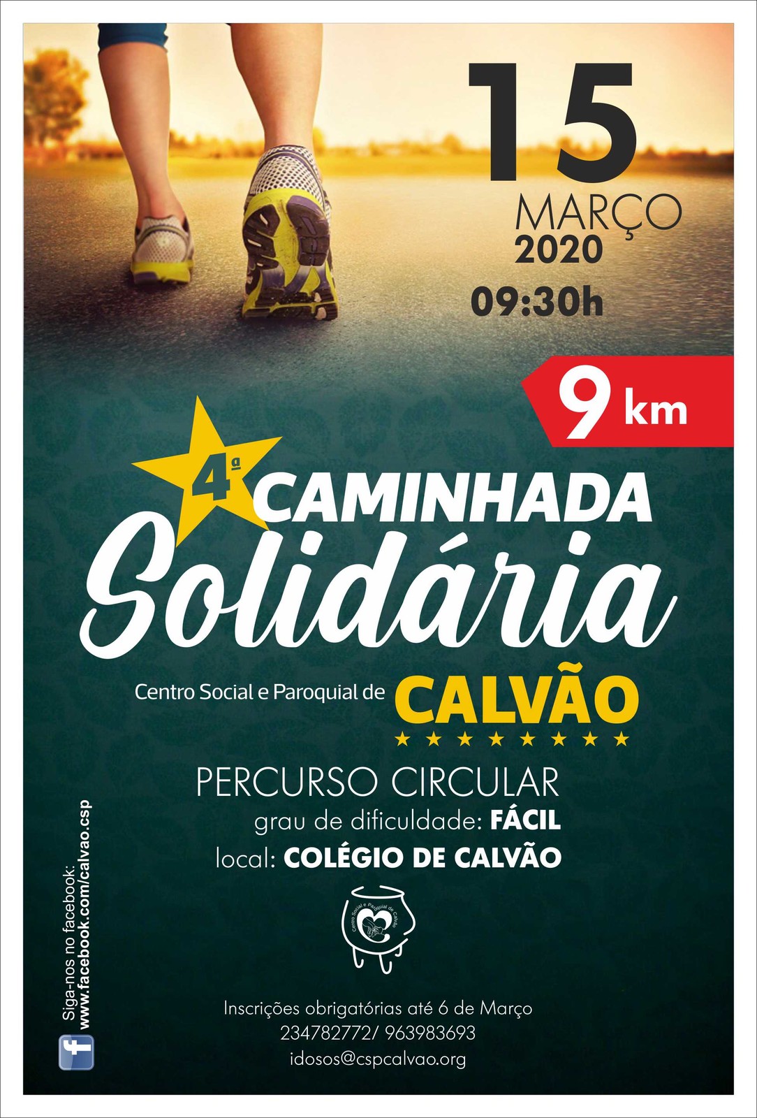 A inscrições, para a caminhada, decorrem até dia 6 de março através dos contactos telefónicos: 234 782 772 | 963 983 693 ou através do e-mail: idosos@cspcalvao.org.