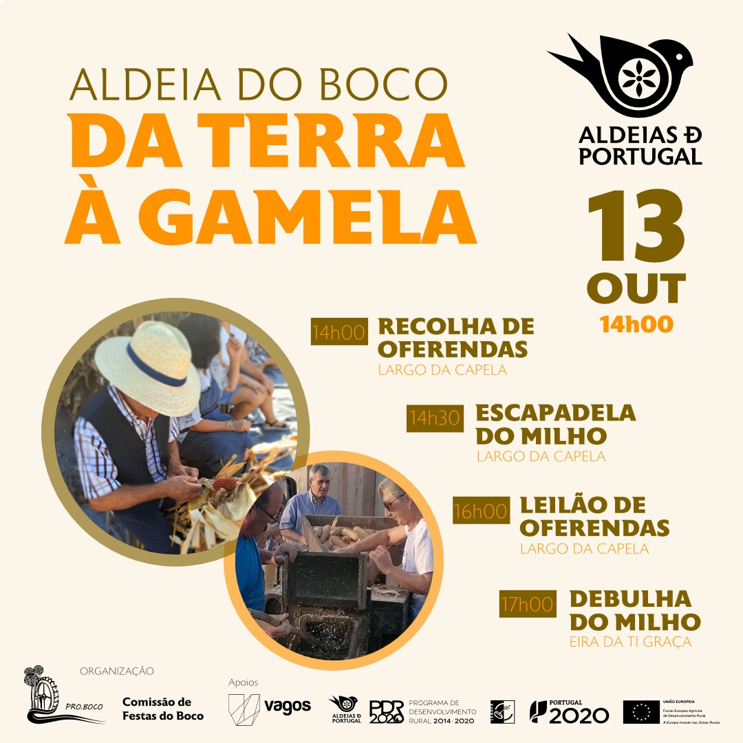 No próximo dia 13 de outubro de 2024, a Aldeia do Boco preparou uma tarde repleta de atividades tradicionais daquela aldeia com a recolha e leilão de oferendas, a realização da escapadela e, para terminar o dia, a recriação da debulha do milho. A participação, nestas atividades, é gratuita bastando comparecer.