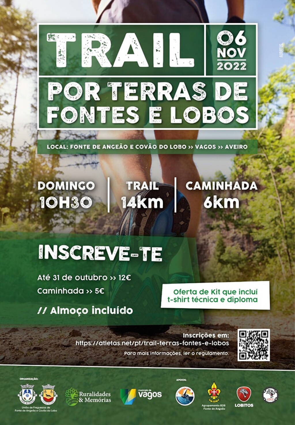 Estão abertas as inscrições para o trail "Por Terras de Fontes e Lobos" que se realizará no próximo dia 6 de novembro, em Fonte de Angeão e Covão do Lobo, concelho de Vagos e que incluirá um trail de 14km e caminhada de 6km.