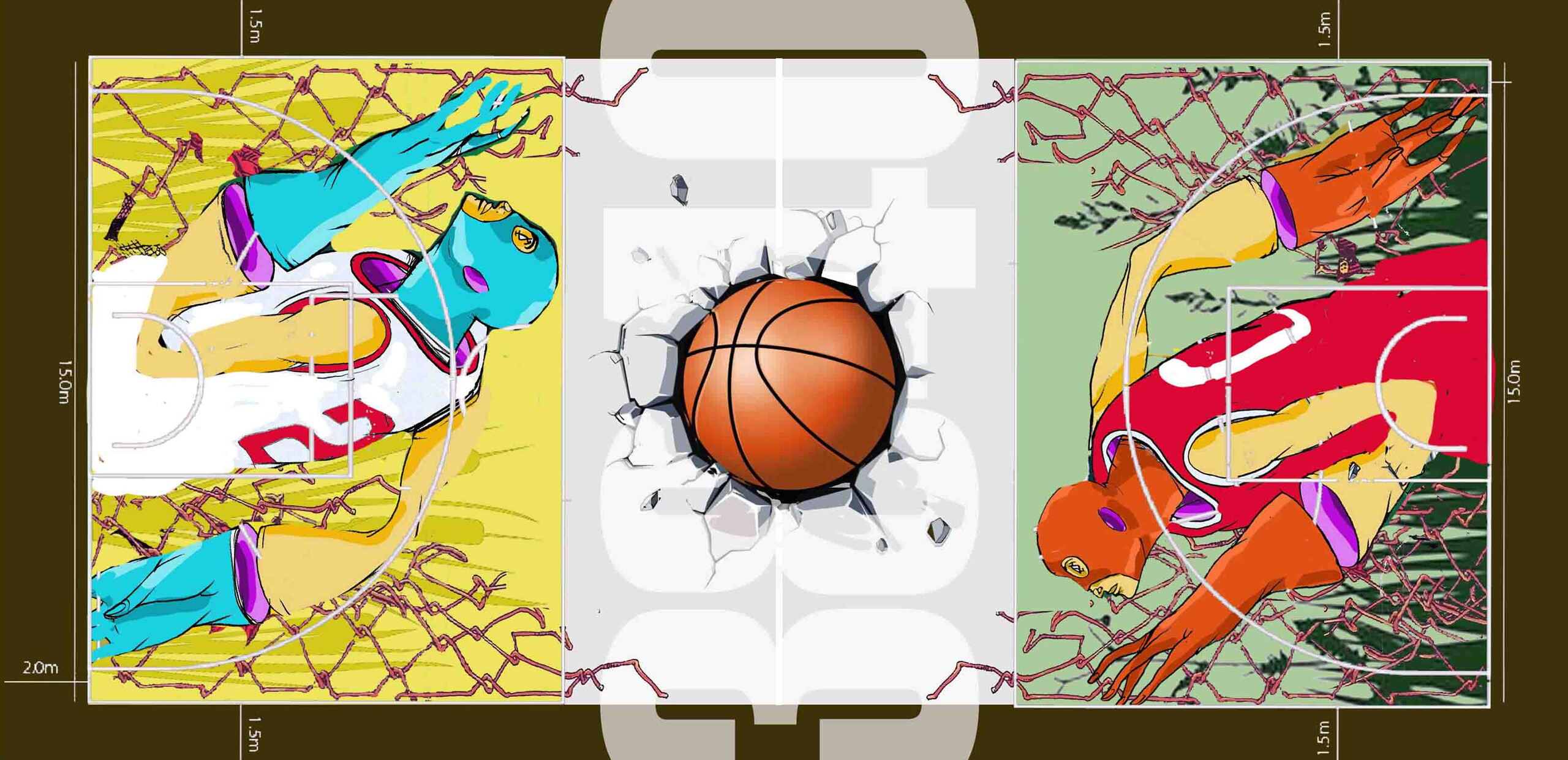 O campo foi pintado pelo artista Gonçalo Ribeiro e explica o conceito da arte que realizou da seguinte maneira: “Um campo de Basquete e dois Titãs de peso que se confrontam no mesmo espaço. Onde esse confronto é o seu equilíbrio pois, um não pode existir sem o outro, os Titãs que falo, também representam a Vagueira, que são, a Água pela Ria e o Mar e a Terra pela sua Gente e Agricultura. O Basquete como um desporto de competição é perfeito para esta analogia mítica sobre estes elementos que coabitam este espaço criado para um "clash" eterno. O esquema de cores usado mostra uma Terra de cores quentes e a Água em tons de um azul suave contrastando entre si. Serve, também, como um alerta para essas fontes de vida porque sem elas não existimos e o quanto precisamos cuidar e passar essa mensagem para as gerações do futuro."