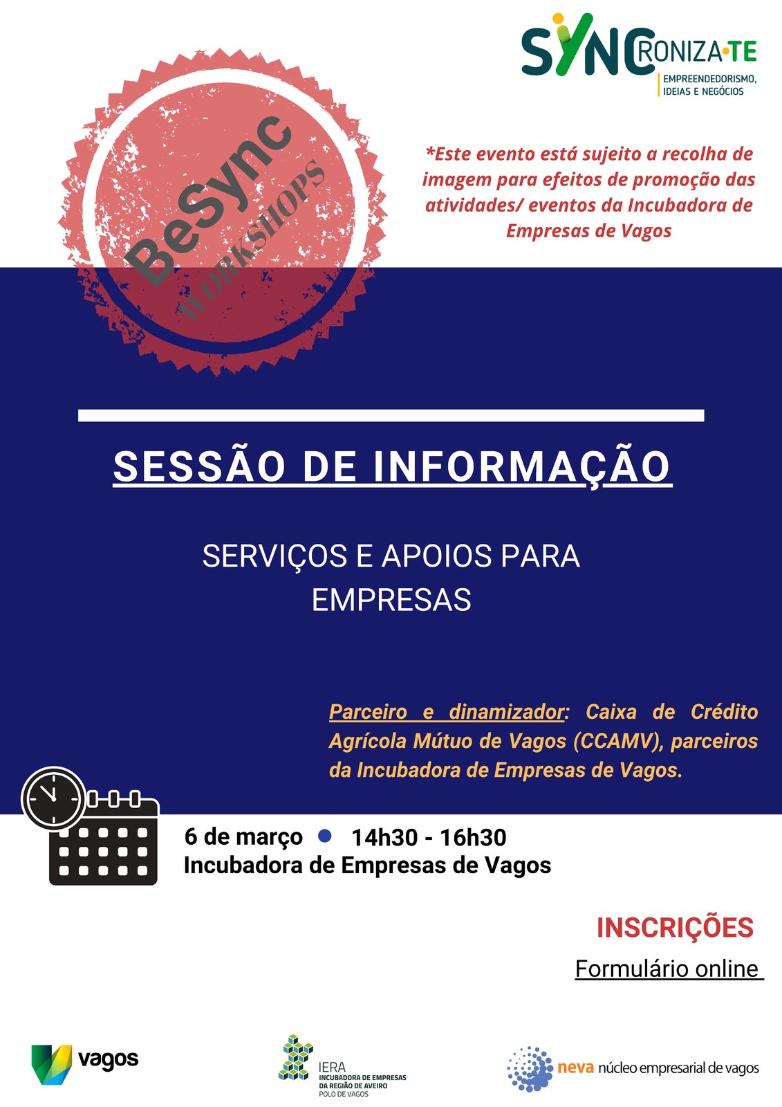 No próximo dia 6 de março (6ªfeira), decorre na Incubadora de Empresas de Vagos (IEVA), das 14h30 às 16h30, uma sessão de informação promovida pela Caixa de Crédito Agrícola Mutuo de Vagos.