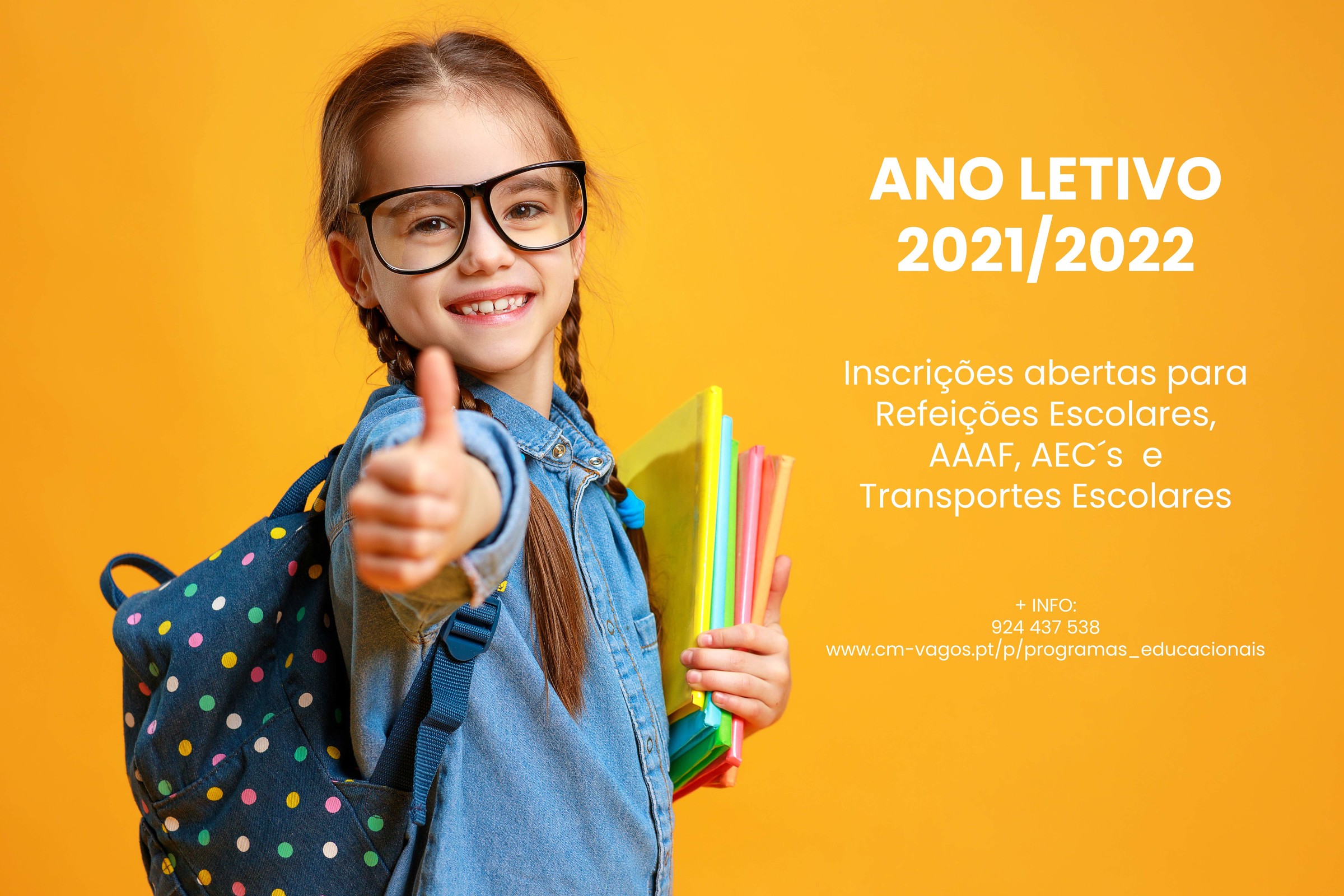 Encontram-se a decorrer, entre 20 de maio e 30 de julho de 2021, as inscrições para as Atividades de Animação e Apoio à Família (AAAF), para os alunos da Educação pré-escolar, e para o Programa de Generalização do Fornecimento de Refeições, Atividades de Enriquecimento Curricular (AEC´s) e Transportes Escolares, para os alunos do 1.º ciclo do ensino básico, para o ano letivo 2021/2022.