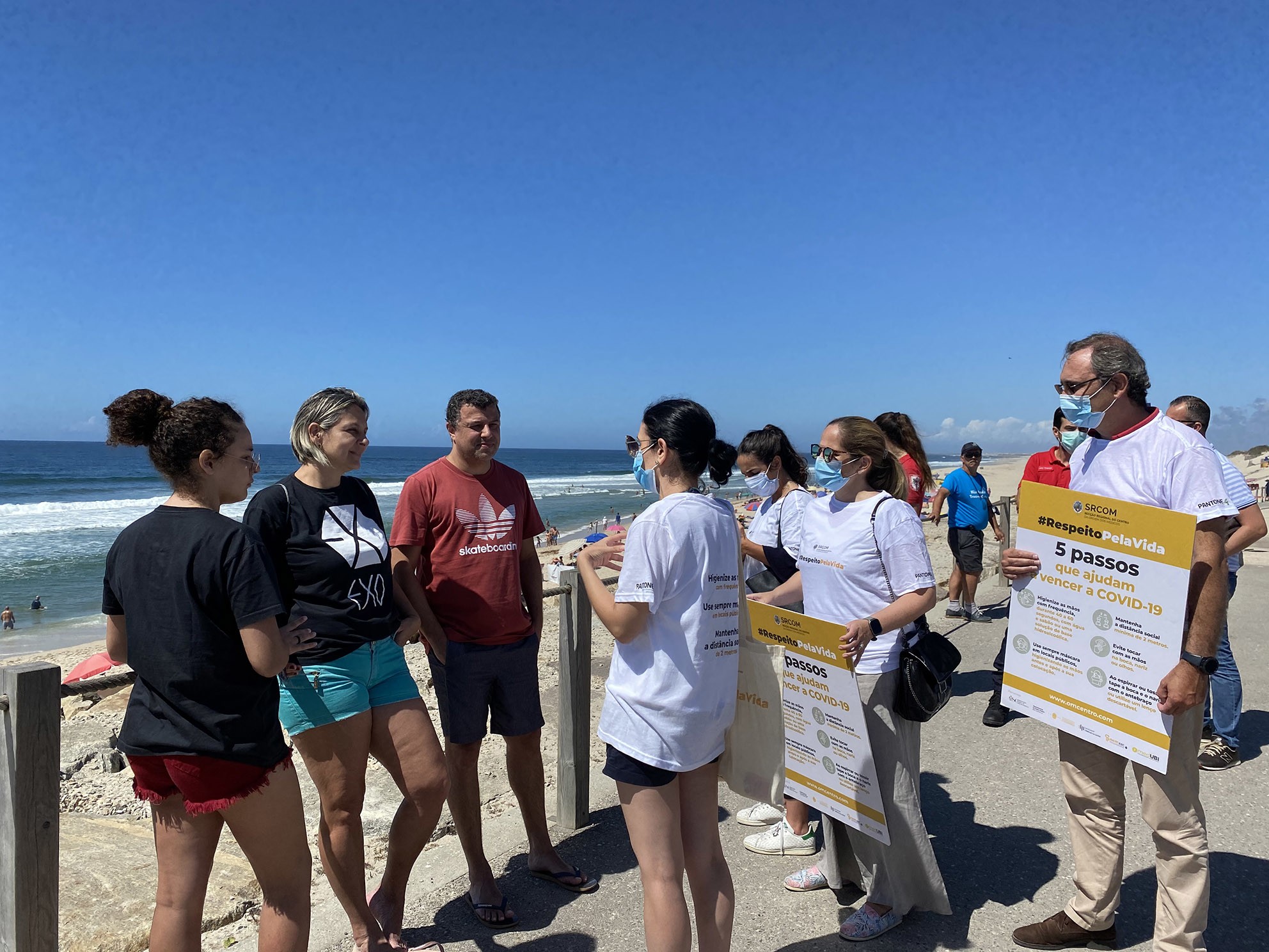 Foram cerca de 20 pessoas que estiveram presentes, no passado sábado, na Praia da Vagueira, para dar corpo a uma iniciativa intitulada “Respeito Pela Vida”, que serviu para sensibilizar os veraneantes a prosseguir com os cuidados no combate à pandemia Covid-19. Os conselhos mais enfatizados passaram pela necessidade de promover o uso de máscara, mesmo no exterior, na frequente higienização das mãos e na manutenção da distância de segurança.