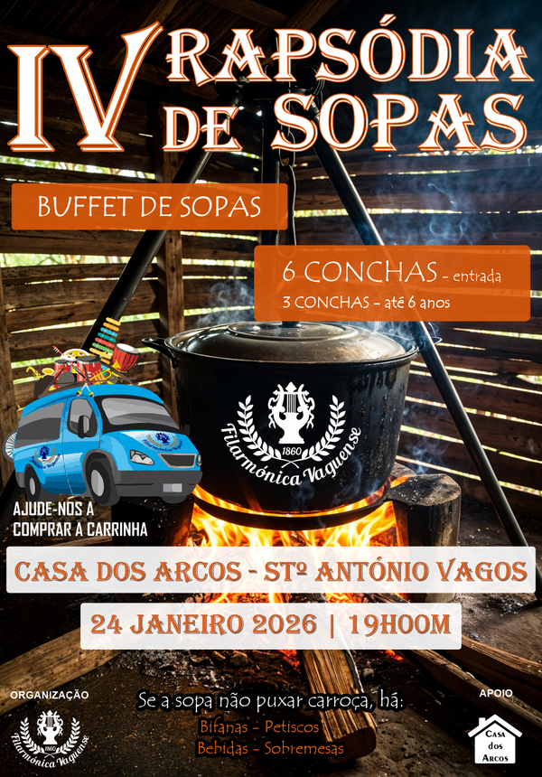 14 Mar 2026Filarmónica Vaguense promove IV Rapsódia de Sopas com fins solidários