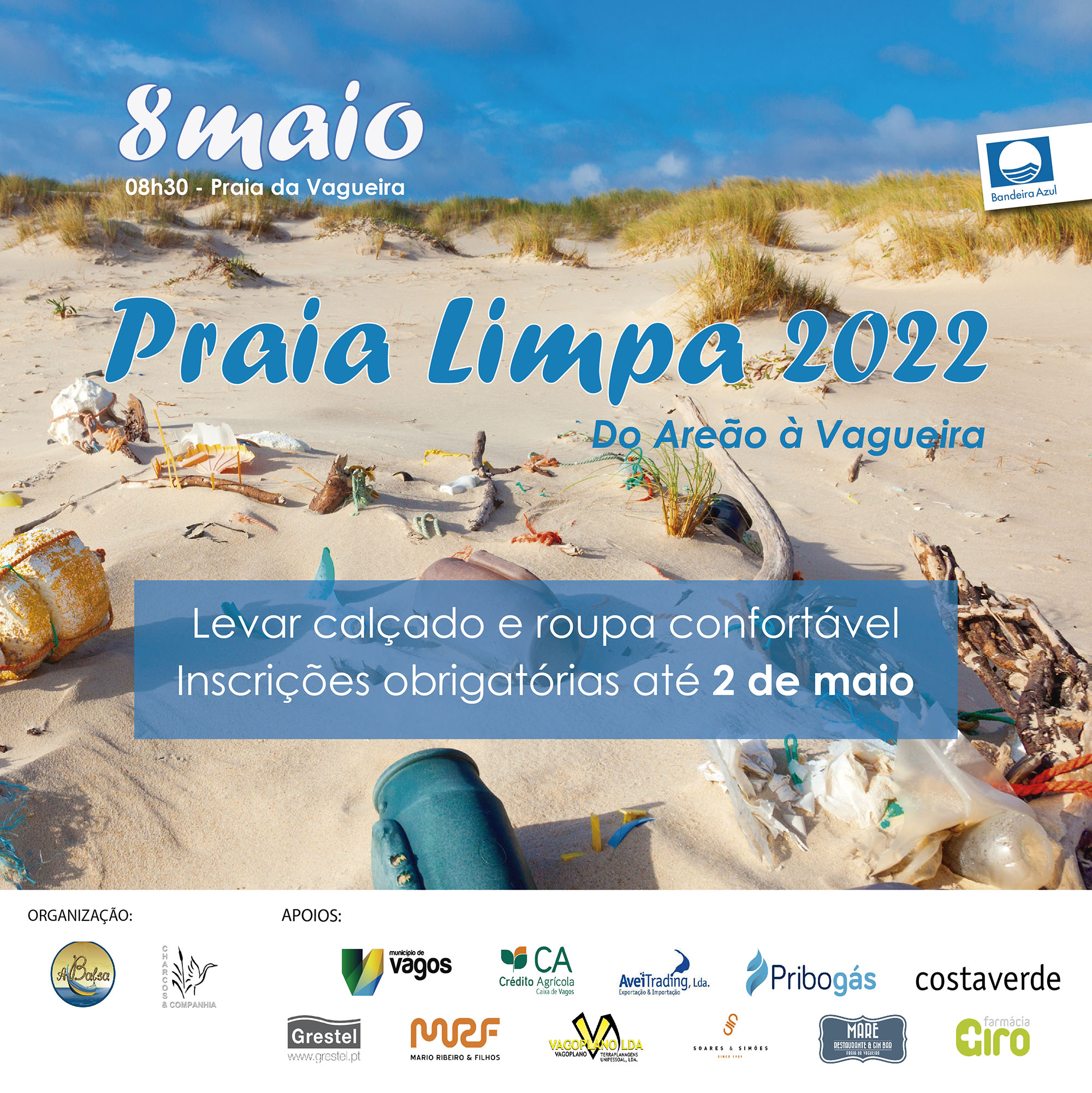 A participação é gratuita, mas requer de inscrição obrigatória, através do seguinte link: https://bit.ly/praialimpa2022. As inscrições decorrem até dia 2 de maio.