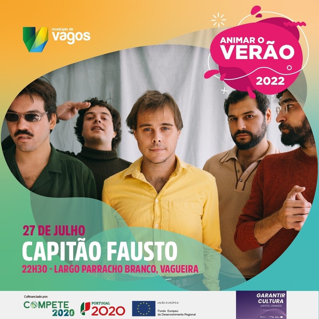 Inserida na programação do "Animar o Verão 2022" decorre, na próxima quarta-feira, dia 27 de julho de 2022, pelas 21h30, o concerto com os "The Lemon Lovers", e pelas 22h30 o concerto com o "Capitão Fausto", no Largo Parracho Branco, na Praia da Vagueira.