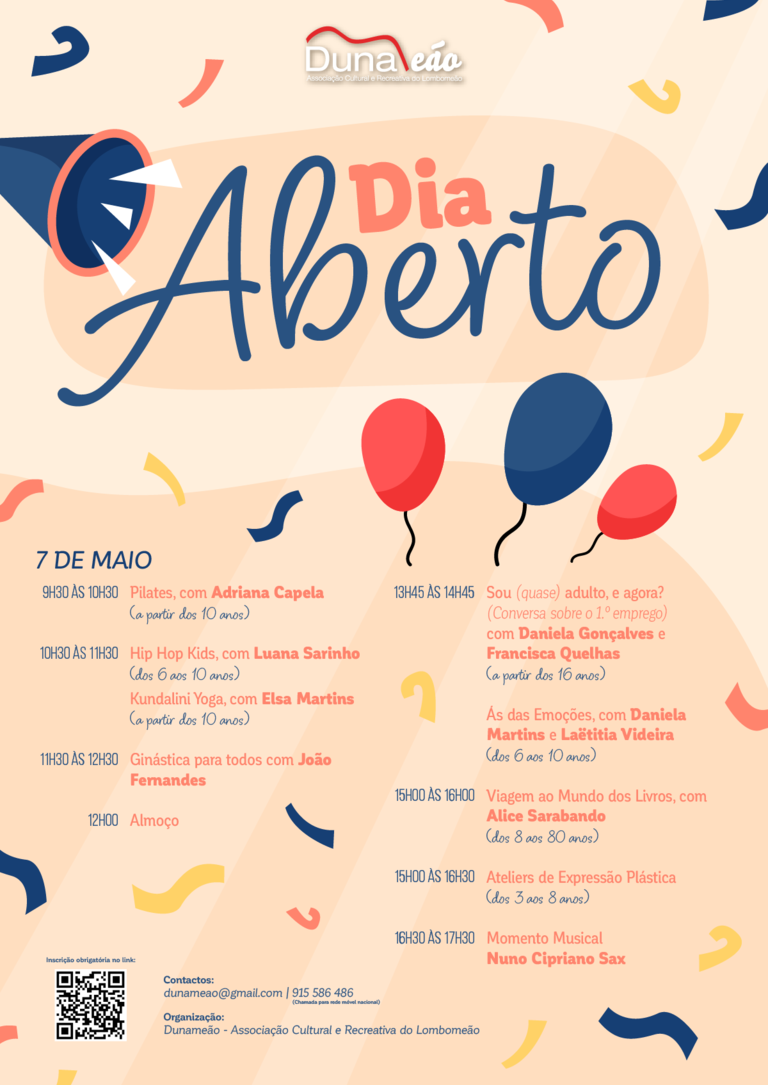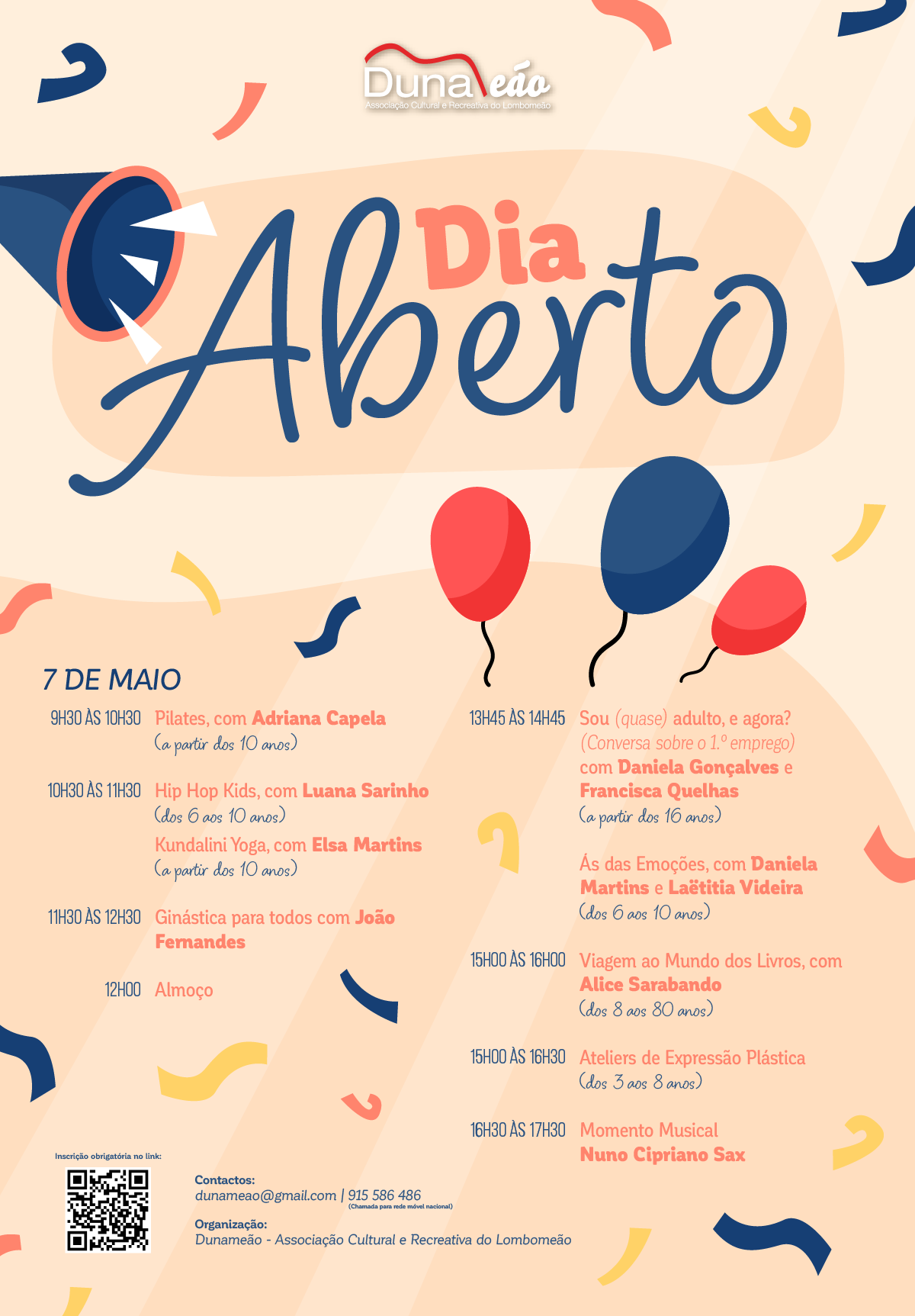 O “Dia Aberto” pretende dar a conhecer a todos os sócios, não-sócios, amigos e conterrâneos as atividades desenvolvidas na Dunameão, mas também aquelas que estão prestes a começar. Entre elas, destacamos o início do Hip Hop Kids, sessões sobre literacia financeira, inteligência emocional e o Clube de Leitura.