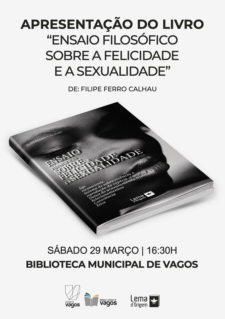 O livro “Ensaio Filosófico sobre a Felicidade e a Sexualidade” de Filipe Ferro Calhau será apre-sentado ao publico, no próximo dia 29 de março, às 16:30h, na Biblioteca Municipal de Vagos.