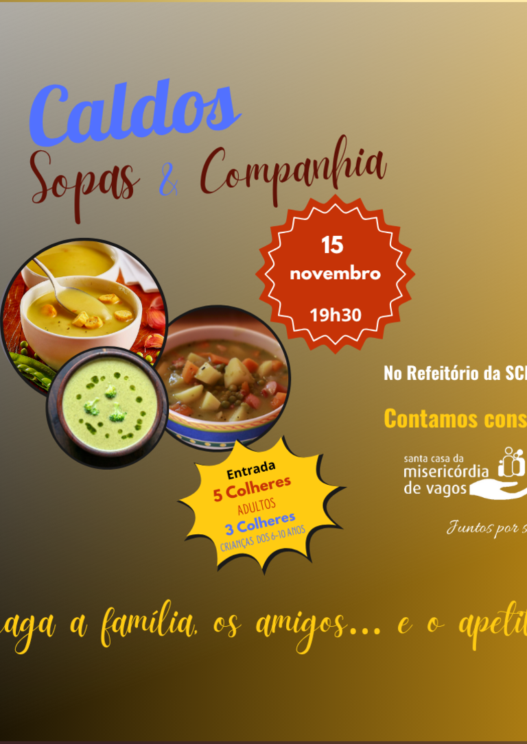 No próximo dia 15 de novembro, a Santa Casa da Misericórdia de Vagos convida toda a comunidade para o evento “Caldos, Sopas & Companhia”, uma iniciativa solidária repleta de sabores e espírito de partilha.