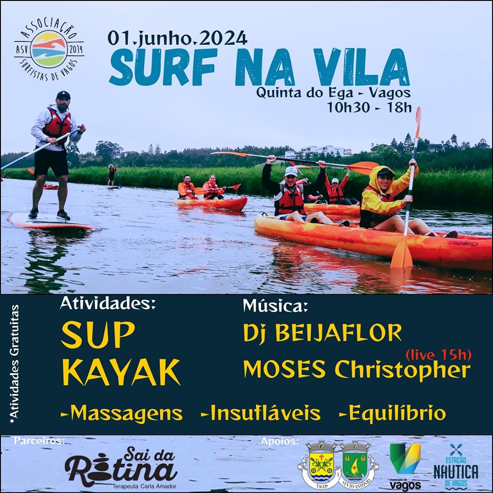Um dia de muita animação e repleto de atividades é o que promete mais uma edição do evento “Surf na Vila” que vai acontecer no próximo sábado, dia 1 de junho, na Quinta do Ega, durante todo o dia.