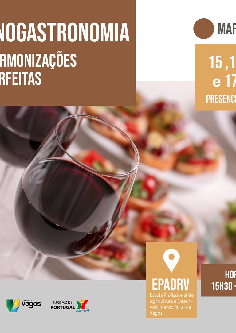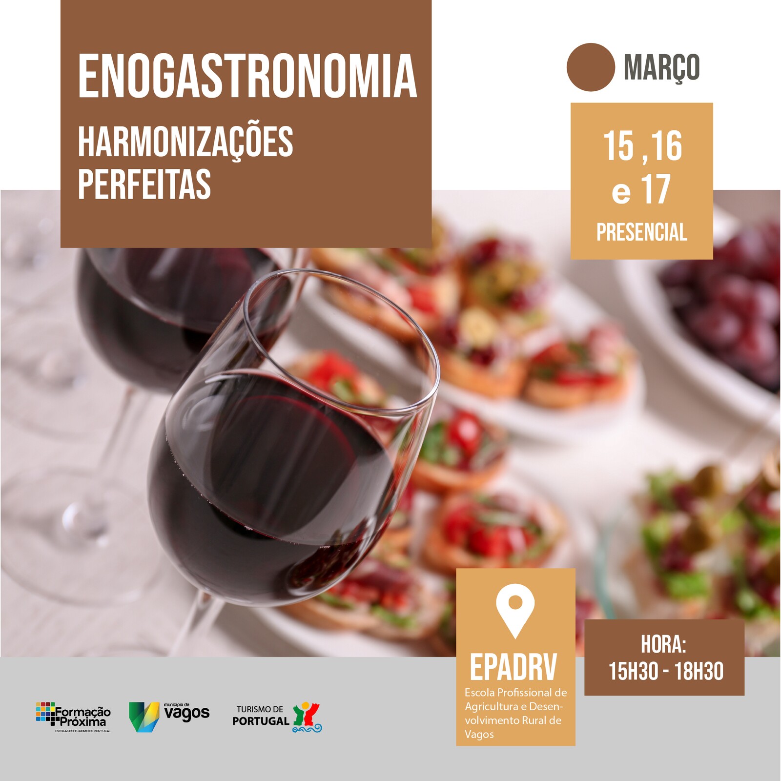 Realiza-se, no dia 15, 16 e 17 de março de 2023, entre as 13h30 e as 18h30, na EPADRV - Escola Profissional de Agricultura e Desenvolvimento Rural de Vagos , uma formação, no âmbito do programa Formação + Próxima, relativa ao tema "Enogastronomia - Harmonizações perfeitas".