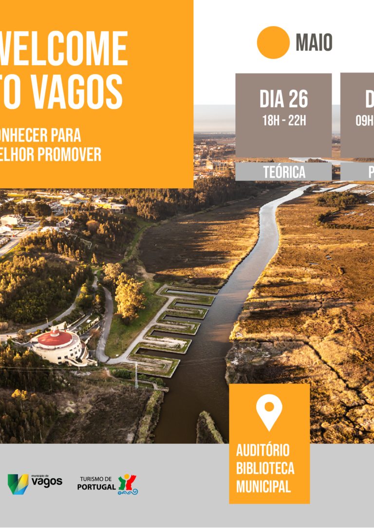 Realiza-se, nos dias 26 e 27 de maio de 2023, a formação "Welcome to Vagos - conhecer para melhor promover" que tem como objetivo dar a conhecer a História e Produtos Turísticos do Concelho de Vagos, preparando os participantes e comunidade local para que possam, em contactos com turistas domésticos ou internacionais, transmitir informação sobre o património material e imaterial.