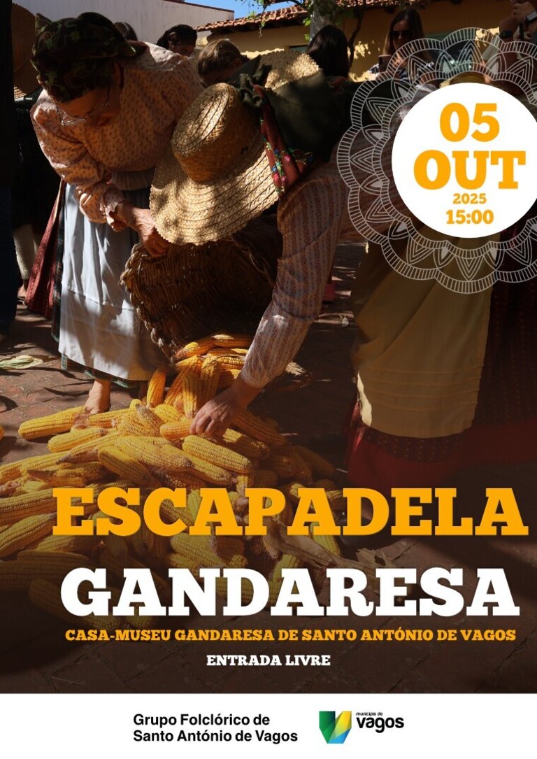 O Grupo Folclórico de Santo António de Vagos organiza, no dia 5 de outubro, a partir das 15h00, a recriação da Escapadela Gandaresa, com música e dança, pão e petiscos.