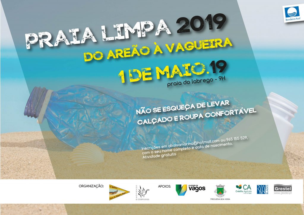 Realiza-se, no dia 1 de maio de 2019, a atividade “Praia Limpa 2019”, no âmbito do programa da Bandeira Azul, com ponto de encontro marcado para as 9h00, na Praia do Labrego.