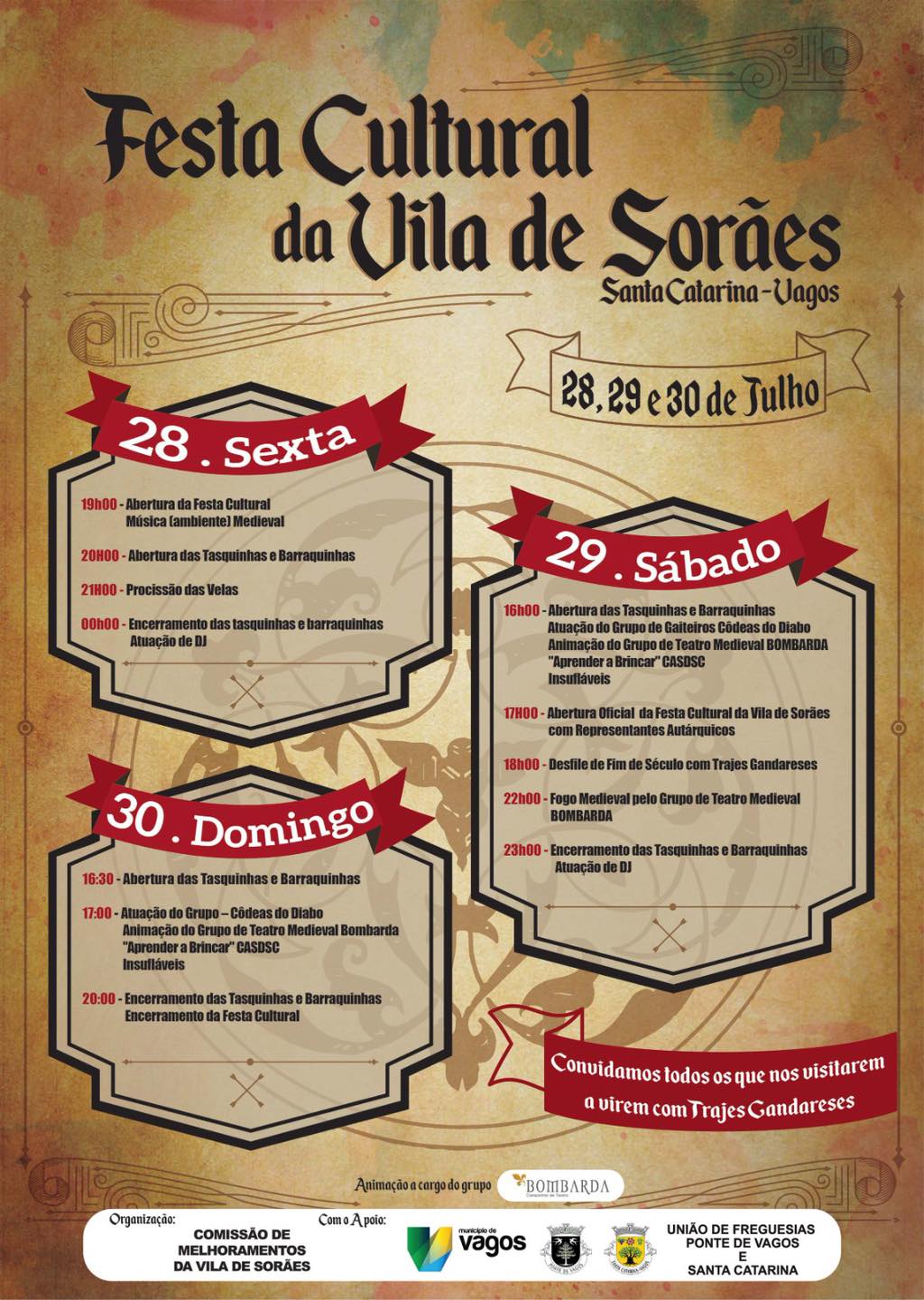 Esta festa cultural pretende ser um encontro com o passado da Vila de Sorães, este ano com o tema "O Fim do Século XIX na Vila", onde, juntamente com as associações da localidade e grupos de animação, irão dar vida ao Largo de Santa Catarina (junto ao edifício da Junta de Freguesia), trajados à época, com tasquinhas de comidas e bebidas, e artesanato.