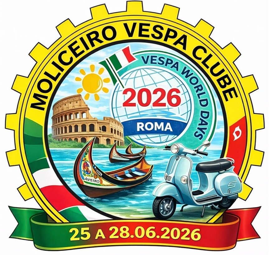 A data será celebrada na cidade eterna, Roma (It), de 25 a 28 de junho de 2026 e o Moliceiro Vespa Clube, com uma embaixada, estará presente nesta grande festa onde está prevista a presença de milhares de VESPAS, de todo o mundo.