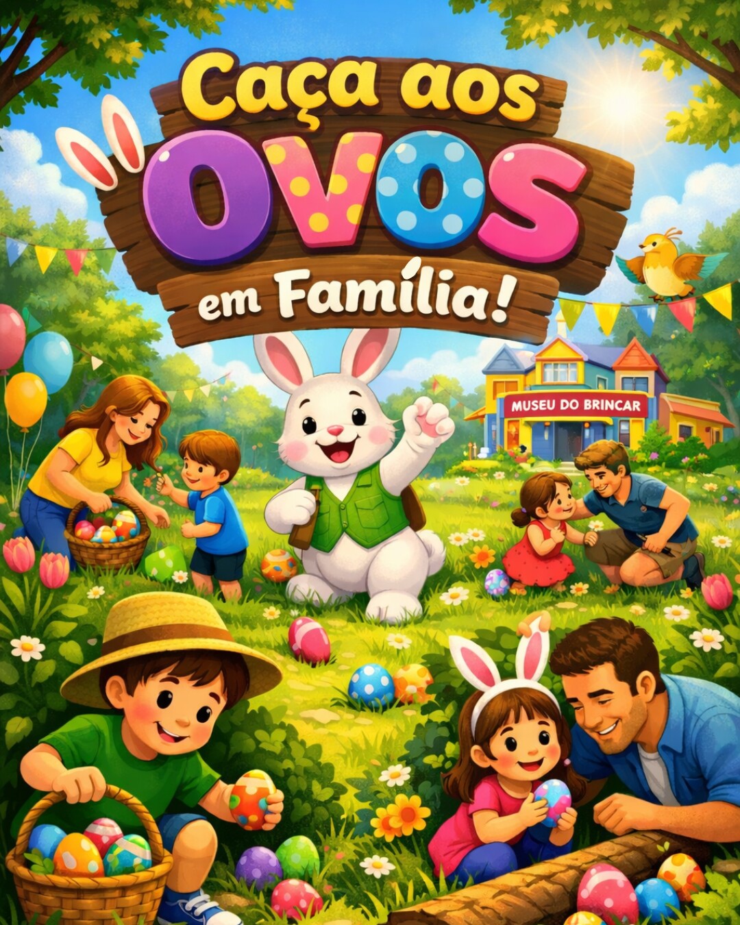Atividade lúdica para famílias que convida os participantes a procurar ovos espalhados pelo museu. Após a descoberta, os ovos seguem para o espaço atelier, onde cada criança poderá pintá-los e personalizá-los, estimulando a criatividade e o brincar.